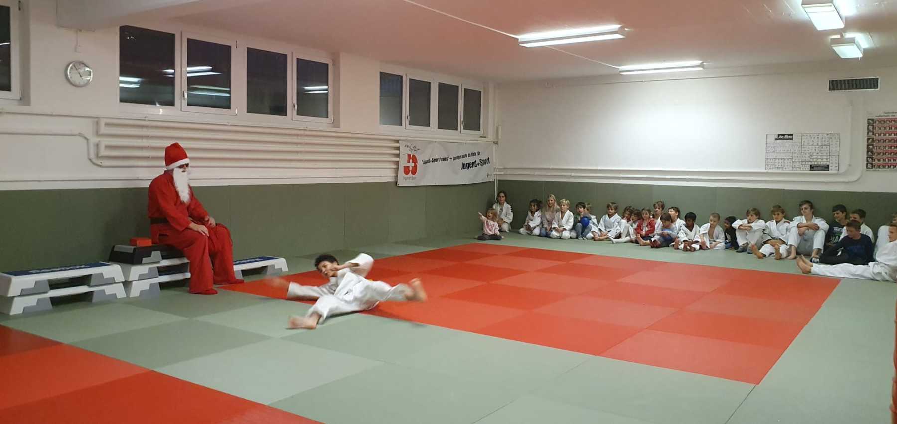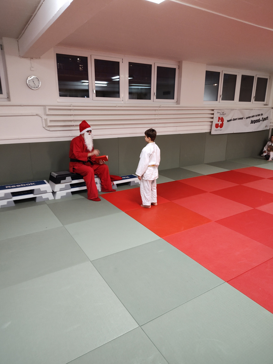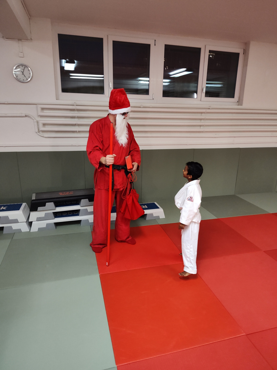 Der Judo-Chlaus der Vorbei kam, beschenkte die fleissigsten Kinder in den Trainings – allen voran Younnes, der insgesamt 86 Trainings absolvierte. Aber alle anderen Kinder konnten sich ebenfalls noch einen Samichlaus ergattern.