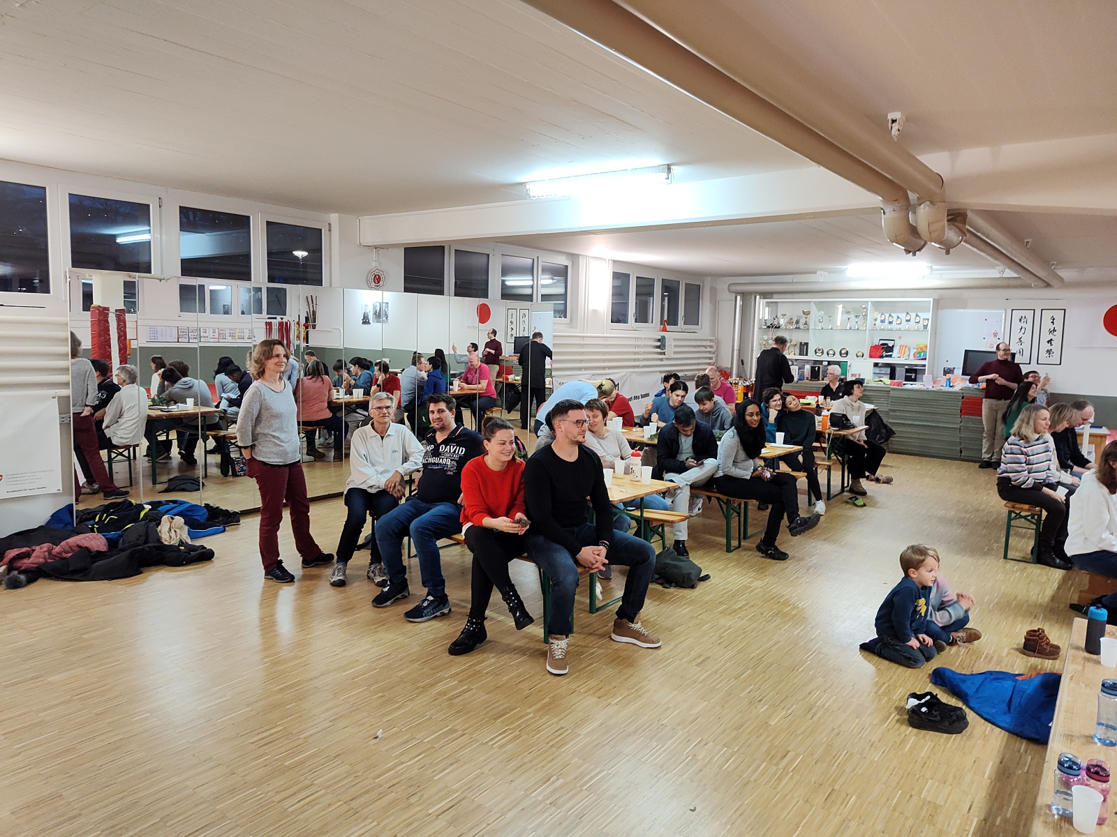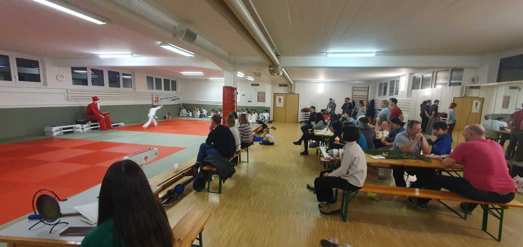 Nebst den Kämpfen gab es aber auch noch viele feine Kuchen (Danke an alle Bäcker/innen) und allerlei andere Samichlaus Leckereinen. Zu den weiteren Höhepunkte gehörte eine kurze Tai-Chi Demo und das Sponsoringwerfen (welches 333.– ergab).