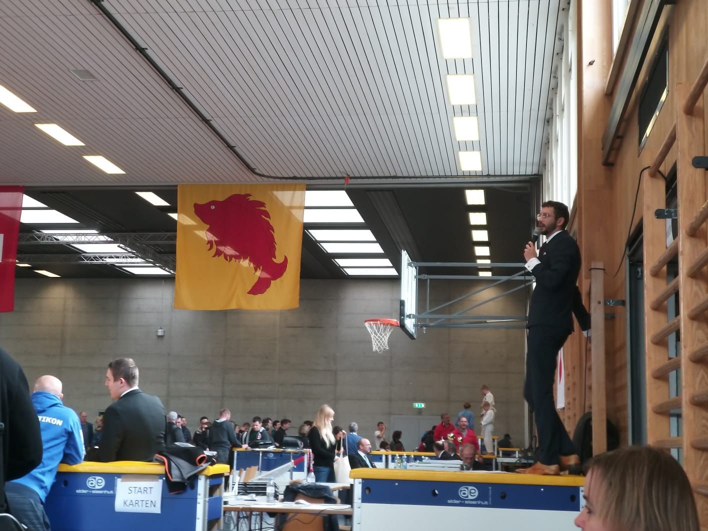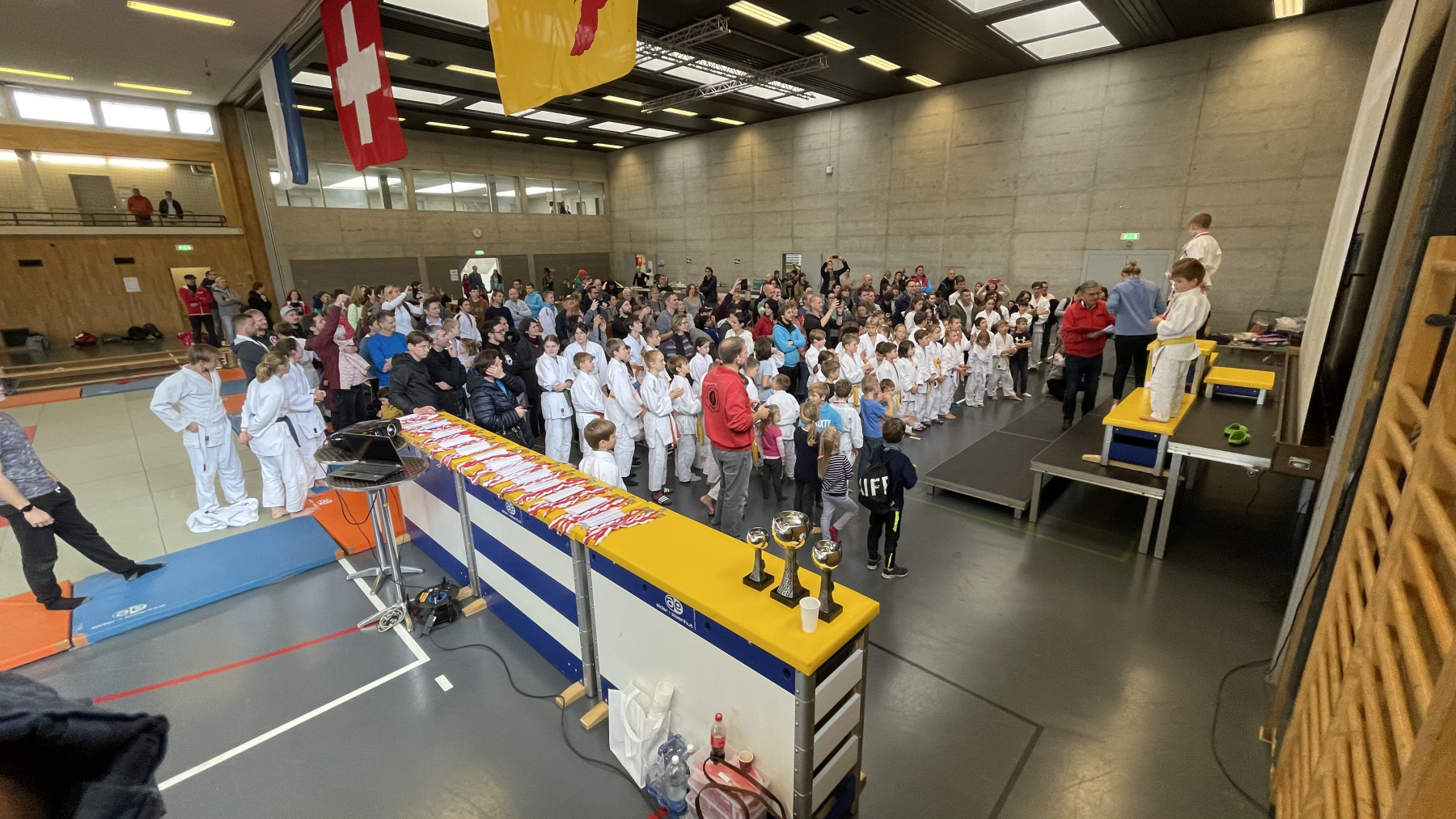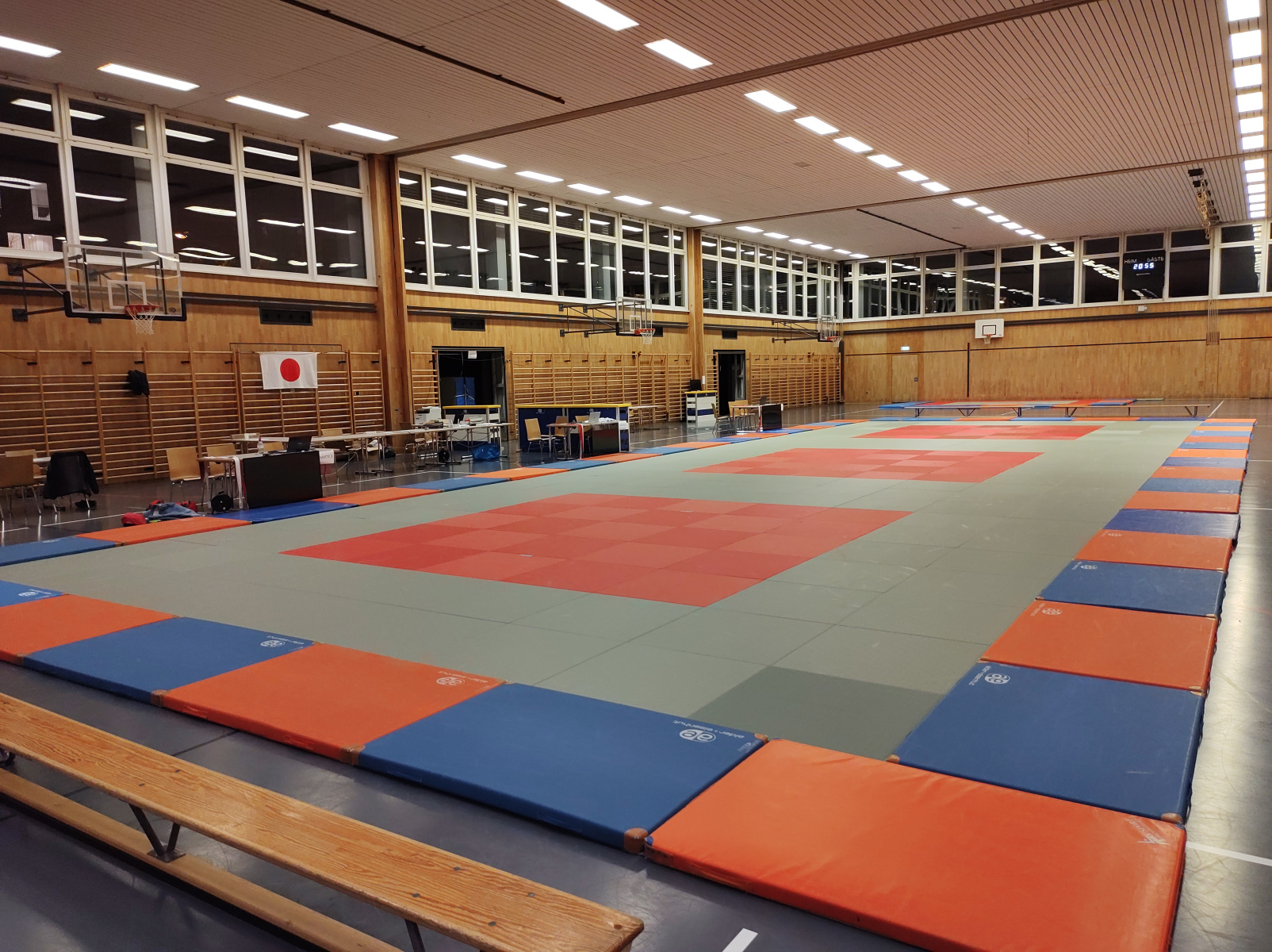 Am Samstag, 19. November trafen wir uns kurz nach Mittag um die Horwerhalle in die Judo-Arena für die ZSJM zu verwandeln – Matten auslegen, Podest aufbauen, Küche einrichten, Tische aufstellen und vorallem die ganze Digitale Infrastruktur aufzubauen – da die ZSJM zum ersten mal 100% digital organisiert wurde.